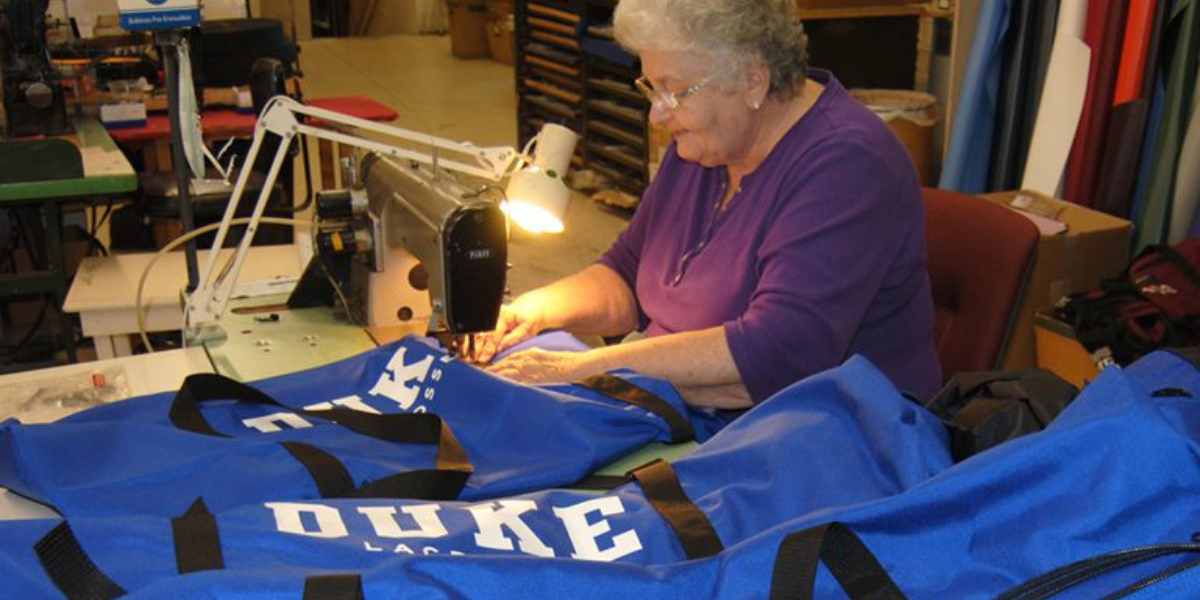Every product is meticulously crafted in our facility in Lewiston, Maine. We cut the fabric and webbing in your chosen colors, handle all imprinting and embroidery, then assemble and ship the final product directly to you.